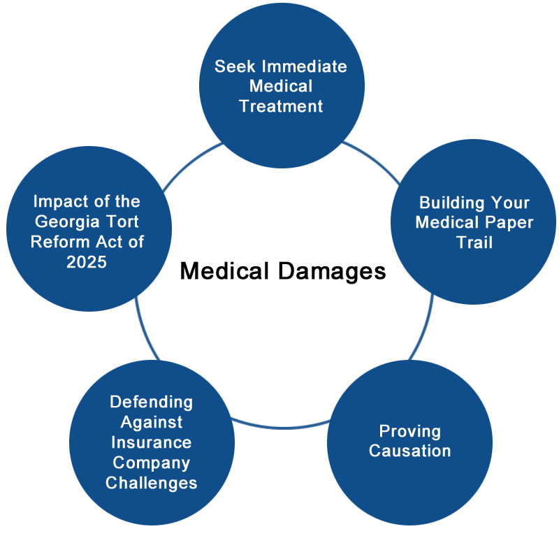 Medical DamagesSeeing a doctor immediately after your car accident is the most critical step you can take to protect both your physical health and your legal rights in Georgia. When you go to the doctor right away, you create an official trail that links the crash directly to your injuries. The adrenaline caused by your accident can mask serious issues like whiplash, internal bleeding, or concussions for hours or even days, and an early diagnosis ensures that hidden injuries are documented before they get worse. If you delay treatment, an insurance company might also attempt to argue that you allowed your own injuries to get worse by failing to act responsibly. To be safe, ensure your health and credibility by seeing a doctor as soon as you can.