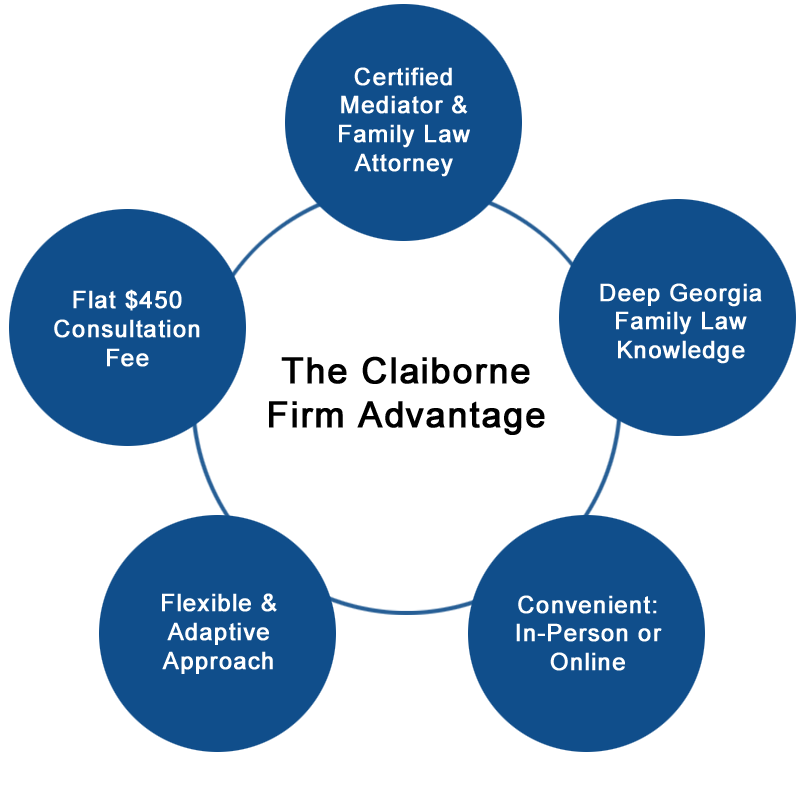 The financial savings in court fees alone – often totaling tens of thousands in dollars – is enough to make mediation an attractive alternative. When you factor in how this approach encourages cooperation, helping to preserve relationships between the spouses and their children, it becomes an even more beneficial way to approach divorce. At The Claiborne Firm, we proudly offer an online solution that can help resolve differences through mediation in 45 days or less.